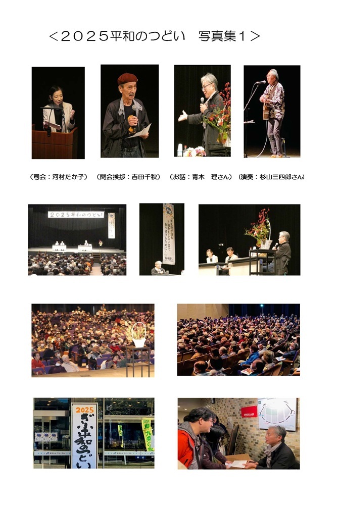 青木さんは、そうならないように、この事態に対して「九条の会」はじめ様々市民団体が力を合わせて抗い、一人ひとりがそれぞれのかたちでがんばりましょうと結ばれました。
